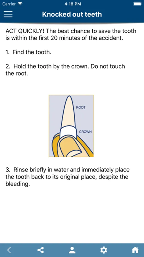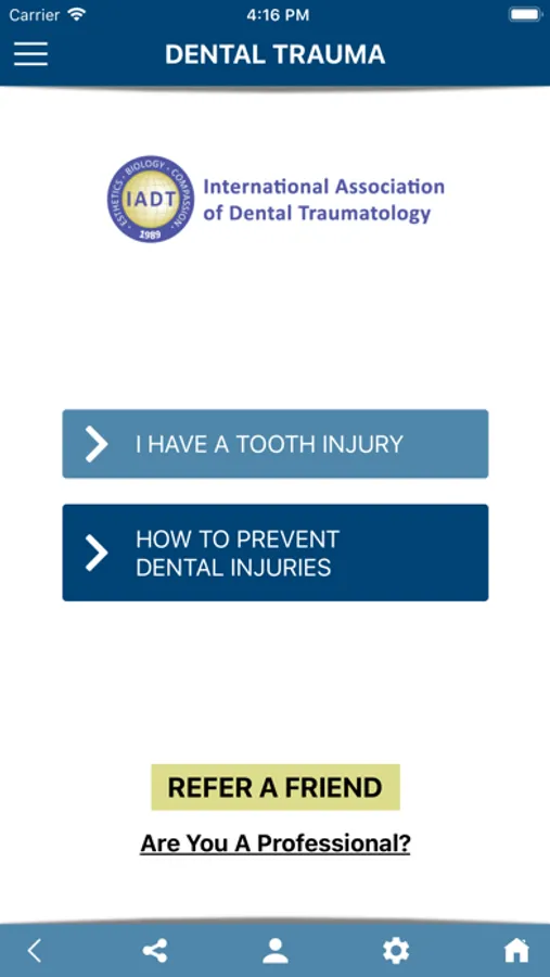 The official IADT App, ToothSOS, provides information for both Patients and Professionals in the event of traumatic tooth injury. For Patients, the App provides easy to understand emergency steps to take in all dental injuries. The immediate care provided at the site of injury will determine the survival of the injured tooth and the smile of your child. This App should be in every mobile device of everyone around the world. In order to save more teeth and smiles, it’s important you share this App with as many people you can. Start with friends, relatives, teachers and coaches.