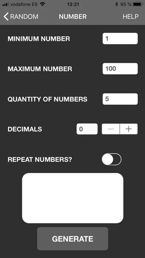 - Generate number: generate one or more random numbers by configuring the parameters as desired (minimum, maximum ...)