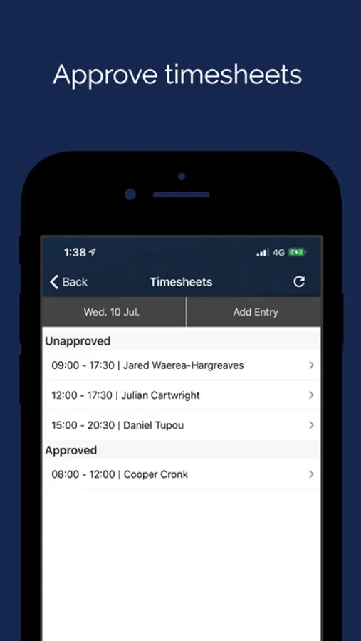 3. Approve timesheets. View scheduled hours against time clock or employee submitted times.