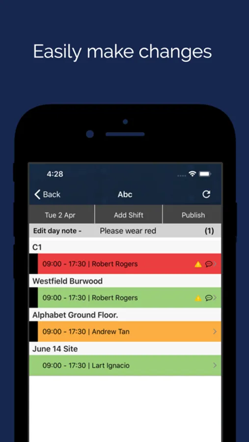 2. View staff schedules and create last minute shifts changes that are communicated to staff via SMS, email, and notifications