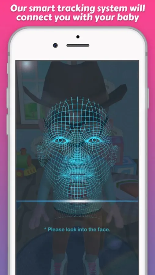 It’s similar to Animated Emojis. Using the front camera of your smartphone, the Face detection will analyze your face, and it will your baby’s face with your own face. And now the baby will be doing the same head movements you do. Super fun, and It’s real time. The baby will look like you.
