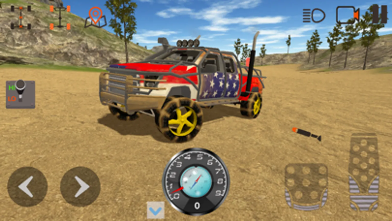 You can choose various vehicles from 6 different vehicle classes now: Trucks (SUVs and pickups), ATVs (quads), SxS, Rock Crawlers, Muscle Cars and Semi Trucks. There are 5 different maps where you can drive your vehicles - mountain woods, desert, snow mountains, rock park and stunt park.