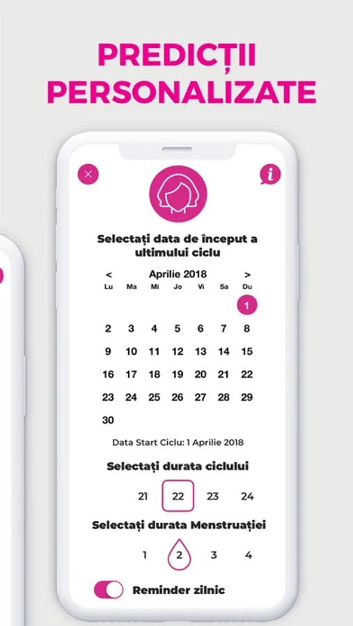 - îți oferă posibilitatea de a seta durata menstruației și îți indică posibile schimbări prin care corpul tău trece pe toată durata ciclului menstrual;