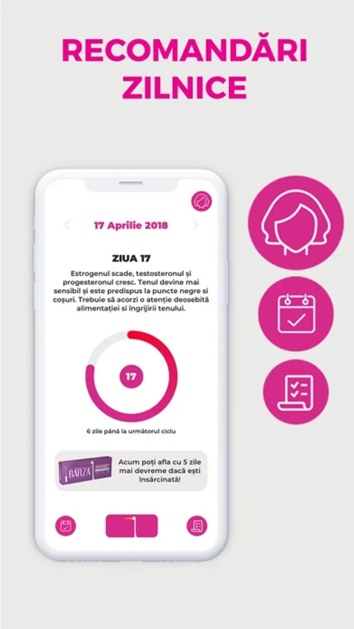 Aplicația Barza te ghidează pe parcursul ciclului menstrual și îți indică schimbările hormonale care îți pot influența viața de zi cu zi.