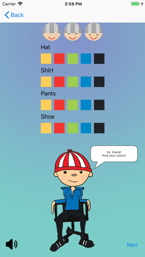 You customise the character who represents you. Pick your favourite colours and the way you wear your hat.