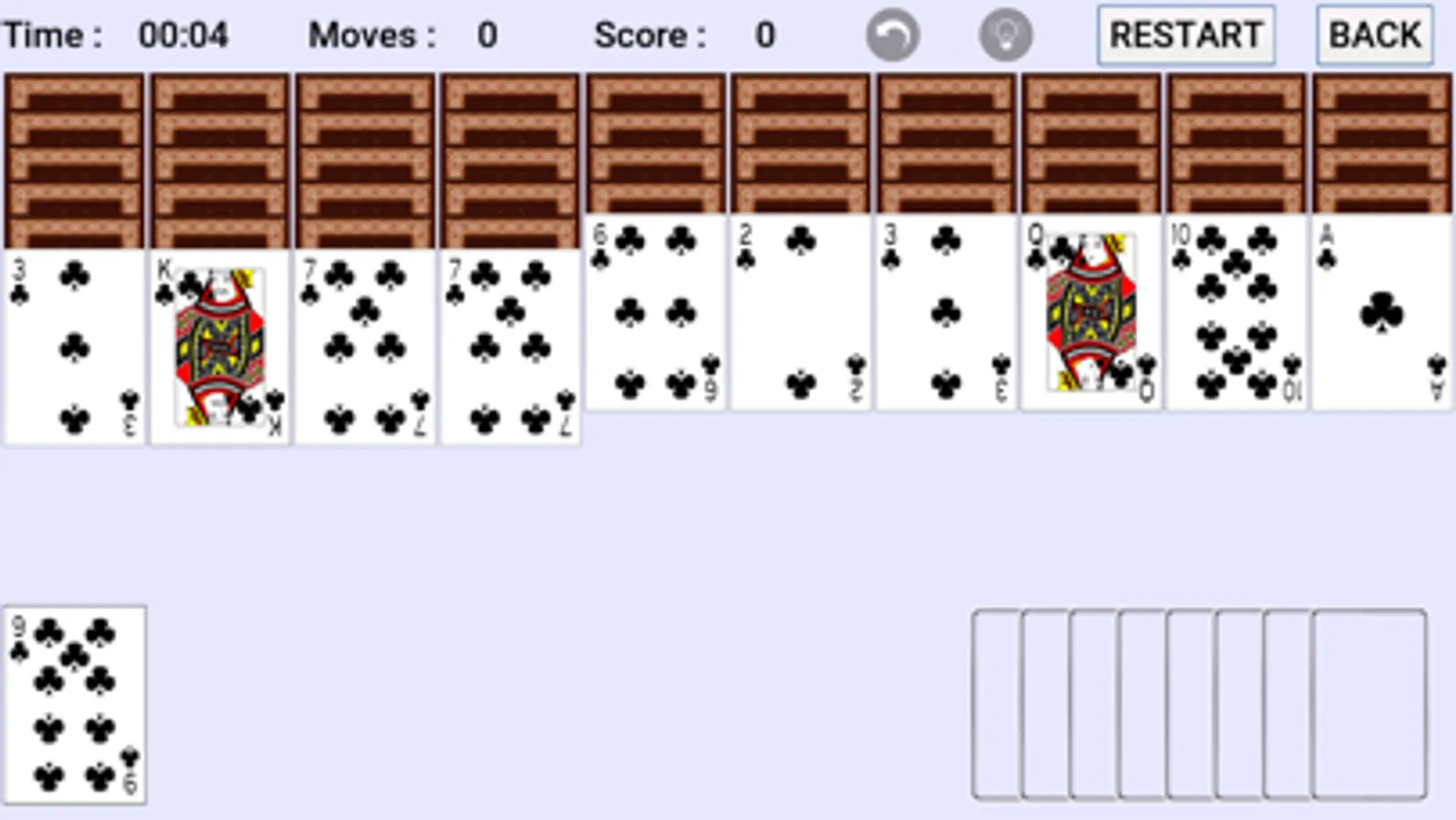 You need to use your strategy and stack all cards of each suit in descending order to solve the puzzle and win the game.