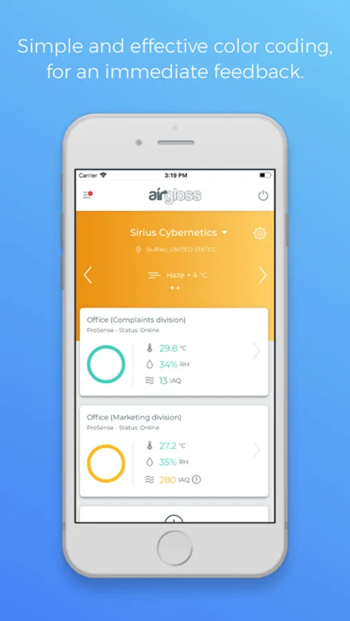 Think bigger! With Airgloss you can easily monitor more than one room, for more than one building, all with a quick glance. Even for professional building automation.