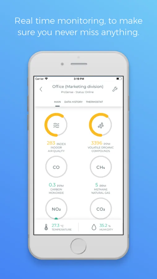 Real time environmental monitoring and control for your security and peace of mind. Manage all your Airgloss devices from one platform and directly control HVAC systems. Review historical data and stats, or choose to receive alerts in case of carbon monoxide build up, possible gas leaks or chemical contamination.