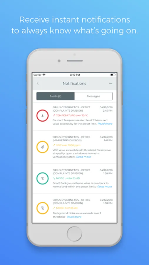 Receive instant alerts with helpful suggestions on your smartphone whenever any parameters are out of range.