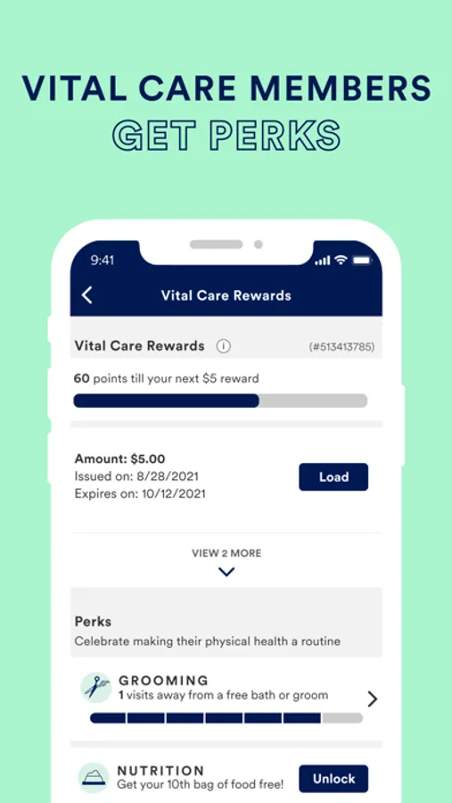 Our Vital Care membership makes pet care easier and more affordable. Track, load and redeem your Vital Care points and Vital Care Rewards in the app.