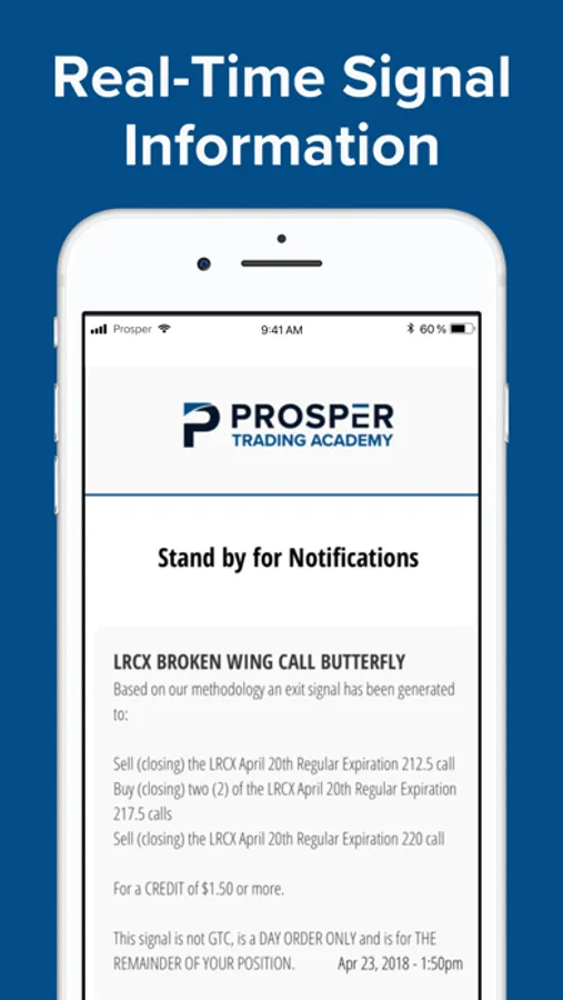 On the go? But still want access to premium Live Signal Room Trading Signals? Access the power of Prosper Trading Academy Live Trading Signals directly to your phone with real-time push notifications. See specific Stock or Options trades with detailed entry, exit, and risk management parameters for everyone one of our Live Signal Rooms.