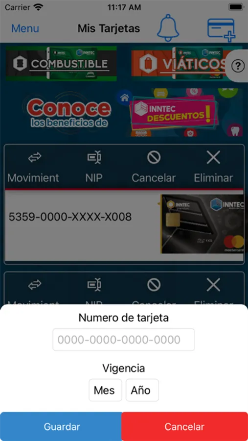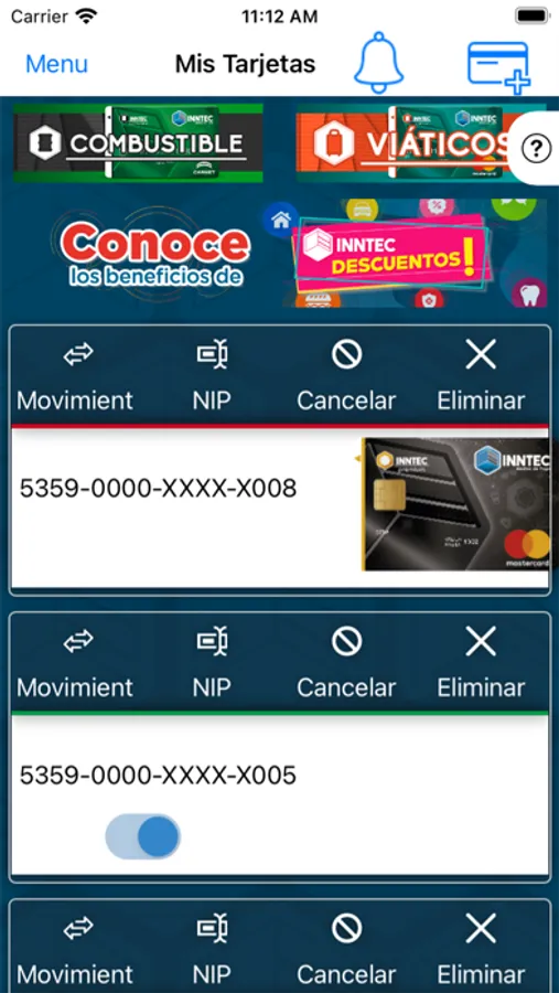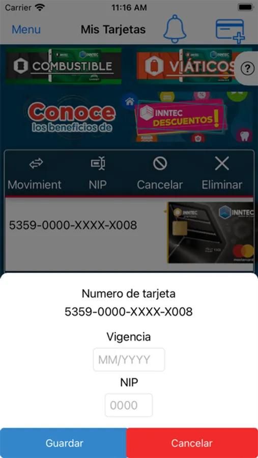 Aplicación para consulta de saldo y movimientos de las tarjetas de Inntec Medios de Pago.