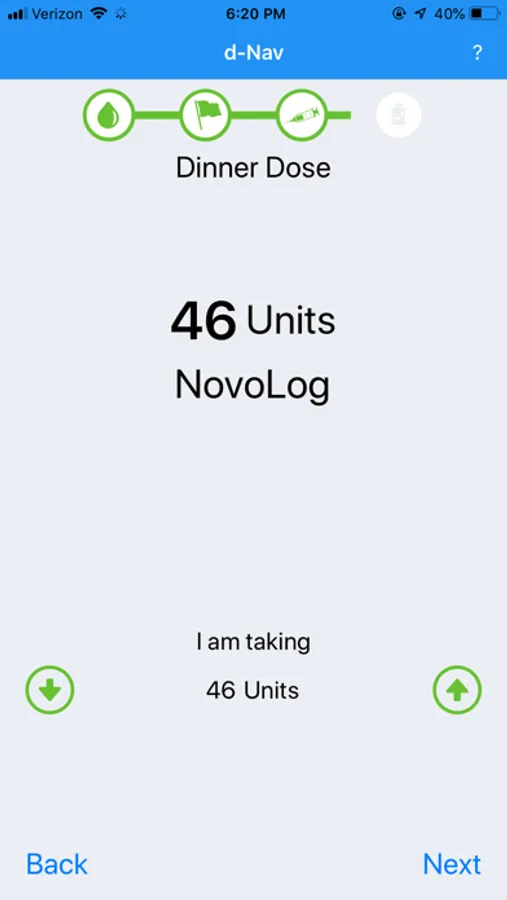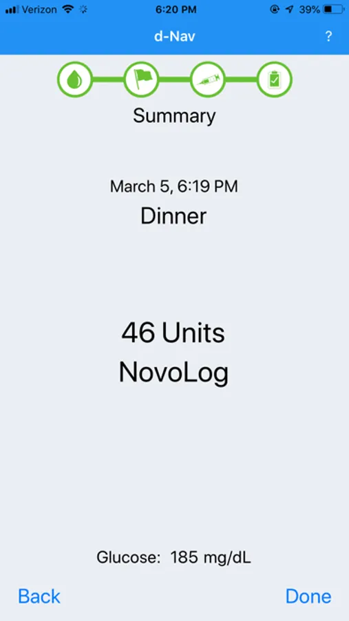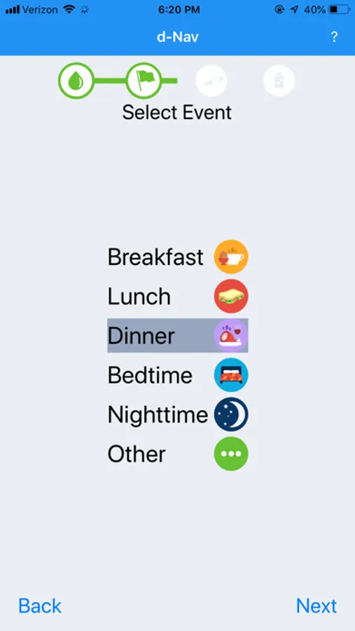 Once installed, the d-Nav app will provide you with a recommended dose prior to each insulin injection. To get a recommended dose you start by measuring your glucose then entering your sugar level into the app (if you’re using a connected meter this step happens automatically). You will be prompted to select an event based on your insulin treatment plan, for instance “Lunch,” and d-Nav would then recommend your insulin dose. All you have to do is to inject the recommended amount of insulin.