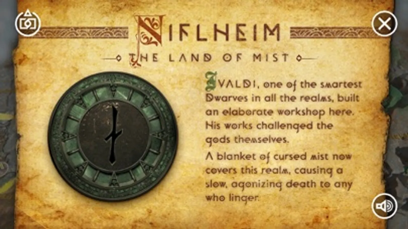Tap, zoom, and lock the map, then touch the points of interest to learn the lore behind this realm of many mysteries. Mimir, a man who’s seen it all, will guide you from The River Pass to The Mountain Peak, giving you a first look at this strange and foreboding world.