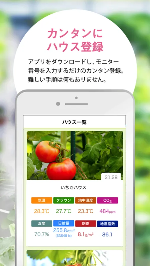 これからの農業には欠かせない、ハウス内のモニタリングアプリです。