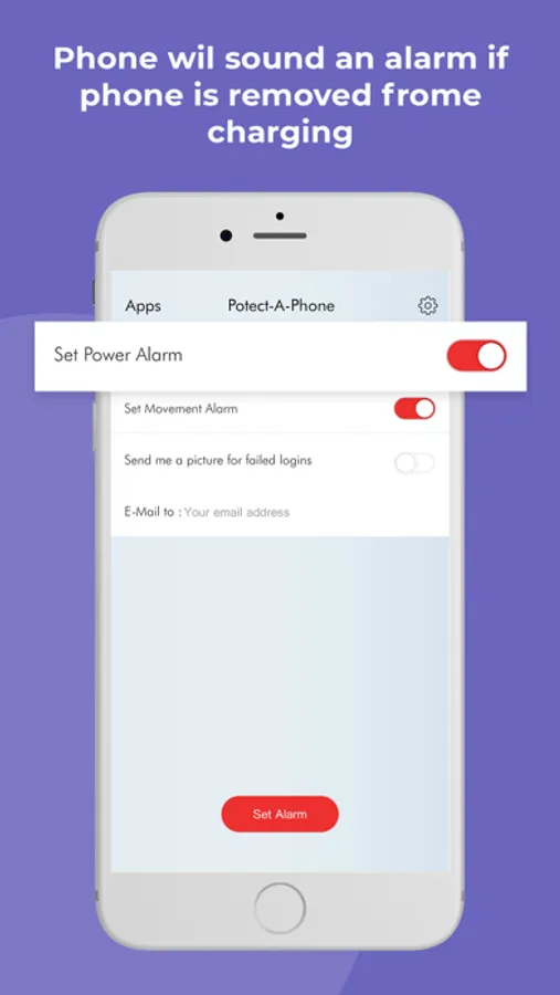 - App allows you activate the alarm after you plug it in for charging. Once activated, if the phone is unplugged, it would trigger the alarm.
