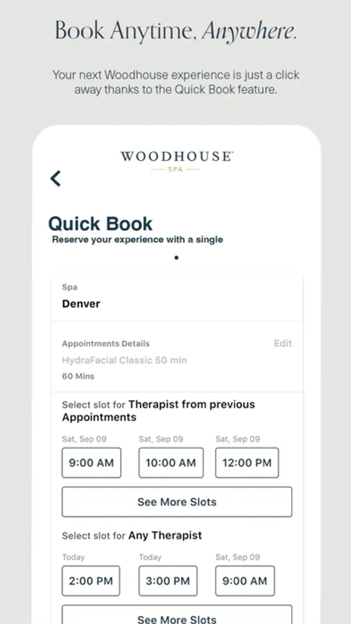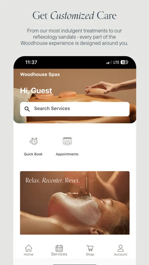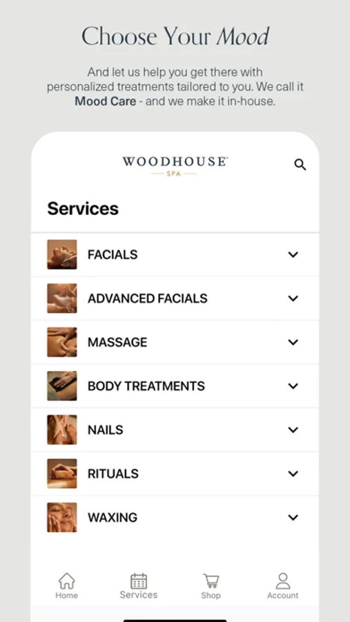 Book a personalized Mood Care experience anytime, anywhere. Download the Woodhouse mobile app to browse and schedule an appointment at any of our 80+ locations, purchase gift cards, and stay in the know about new treatments and premium offers. Discover Treatments and Packages: At Woodhouse, we offer a sanctuary for you to indulge in a host of wellness treatments intentionally developed to uplift the spirit while caring for the body. Book a Personalized Experience: Easily choose and book a customized, holistic experience from our full selection of Mood Care treatments, designed to create a sense of wellbeing that lasts long after you visit. Purchase Gift Cards: Looking for the perfect gift? With a diverse menu of mood care services and treatments, Woodhouse Spa has something perfect for everyone, no matter the occasion. Download the Woodhouse app today.