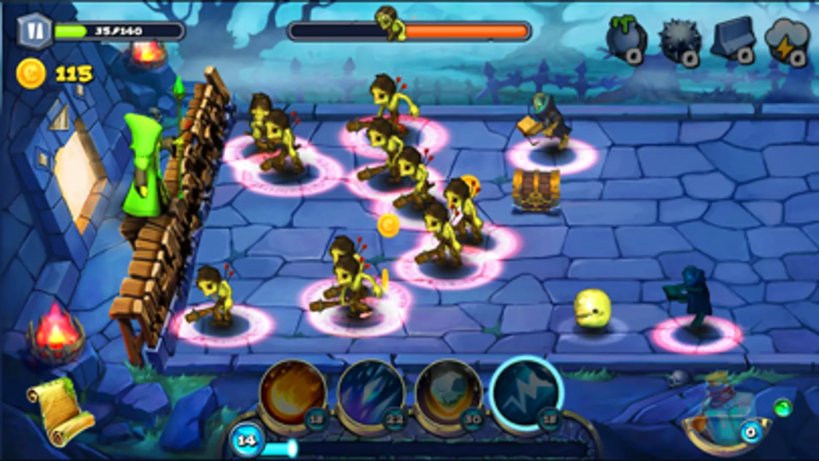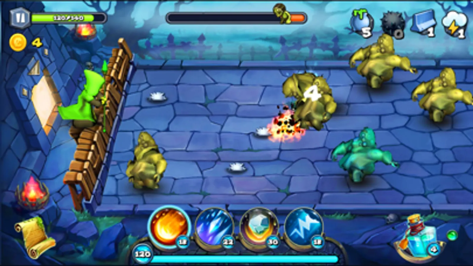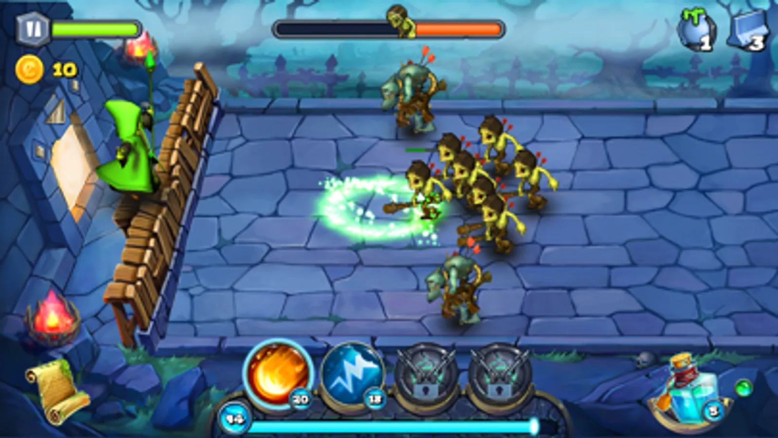 You are a powerful mage which defends own castle from the waves of monsters. It will not be easy! You will necessary to use your tactical skills and the impressive quantity of magic skills and magic scrolls with different effects to kill all your enemies. Using the spell upgrade system, you will raise might of your spells, to kill more powerful monsters.