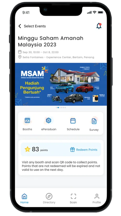 PNB Events App covers most major events held by the Permodalan Nasional Berhad (PNB) Group. The app features on-the-go aspects such as online registration, event schedules, games, event map, as well as push notifications. It will enhance users’ communication experience through a digital-friendly environment.