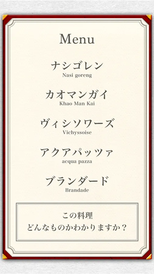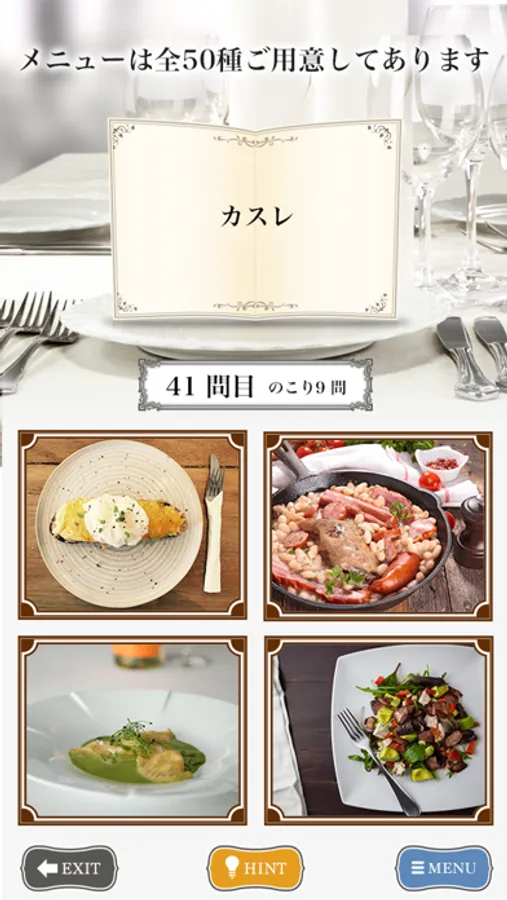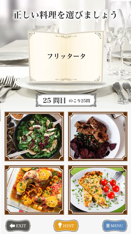 2)4つの選択肢のなかから、答えの料理画像を選択します。