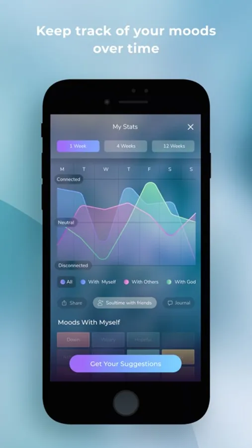 Soultime provides innovative tools to help you understand your moods and personality. We provide easy to read stats from mood checker results so that you can keep track of how you're doing over time. If you're looking for the right scripture, using AI, Soultime can provide empathetic Bible verses and guided meditations tailored to your mood.