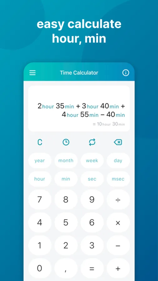 This app will help you calculate Hours, Minutes, Seconds, Millisecond and more