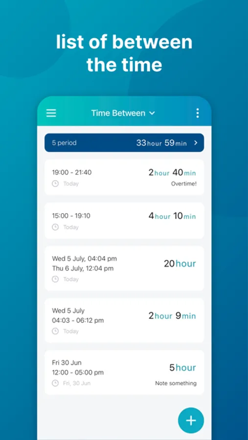 #2 - Time Between: list of period time for your hour work (like TimeSheet)