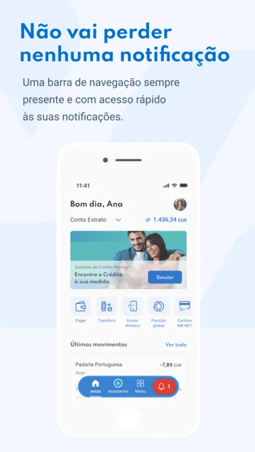 Com esta App, tem a Caixa sempre à mão, 24h/ dia. Pode aceder às suas contas, fazer ou agendar pagamentos, transferências e muito mais.