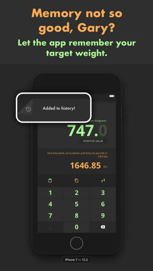 Convert from Kgs to Lbs instantly, in record time, lightning fast. And what's more, you can even tap the switch button and convert back from pounds to kilograms. Groovy.