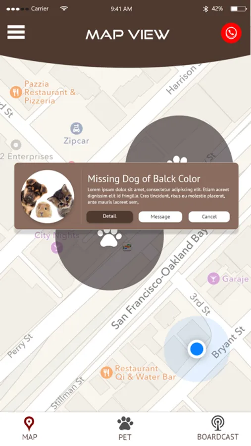 The Pet Detective Apps helps app users post digital missing pet flyers and notify users in the surrounding areas. The Pet Detective App also allows others to find missing animals through geofence broadcast and contact the pets rightful owner. You can create a complete pet profile and send out a missing alert to 1000s in minutes at no charge.