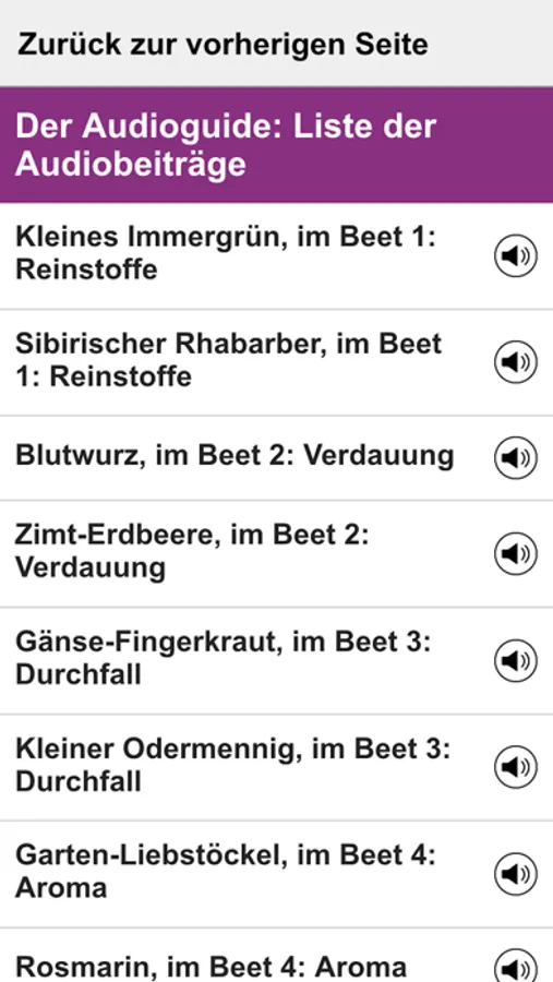 Die offizielle App des Botanischen Gartens Frankfurt in der ersten Ausbaustufe mit 30 Audioguide Texten und 143 Pflanzenporträts zum Senckenbergischen Arzneipflanzengarten, ausgerichtet an den besonderen Bedürfnissen von sehgeschädigten und blinden Besucherinnen und Besuchern.