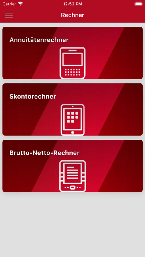 Mit den intuitiven Rechentools der App lassen sich ganz einfach Kreditraten, Skontovorteile oder Brutto- bzw. Nettogehälter berechnen.