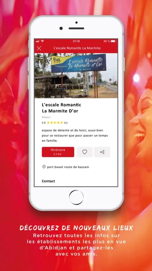 Ainsi le but de cette application est de permettre aux abidjanais comme aux touristes de rechercher et de trouver les meilleurs endroits pour leurs sorties sur Abidjan : Bonnes adresses, maquis ou bars du moment, événements et soirées branchés …