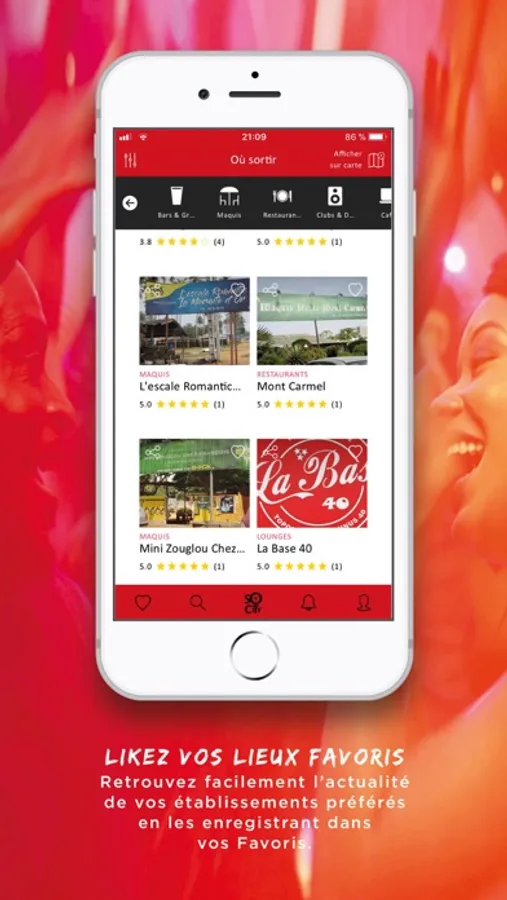 Elle permet notamment aux utilisateurs de rechercher les établissements et/ou événements se trouvant à proximité.