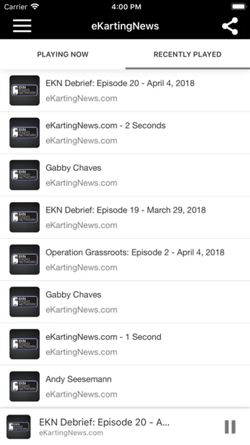 The EKN Radio Network is the audio component of eKartingNews.com, North America’s Karting Authority. With the EKN Radio Network app, you can listen to the archived audio from the many EKN Trackside LIve events throughout the years, in addition to the multiple EKN podcast shows and other audio content geared toward the sport of karting.