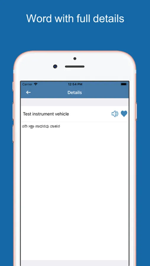 - Want to save a word meaning in the favourites? Tap the heart button and we will add this word automatically in your favourites. You can easily access to it anytime within the favourites choice in the options menu.
