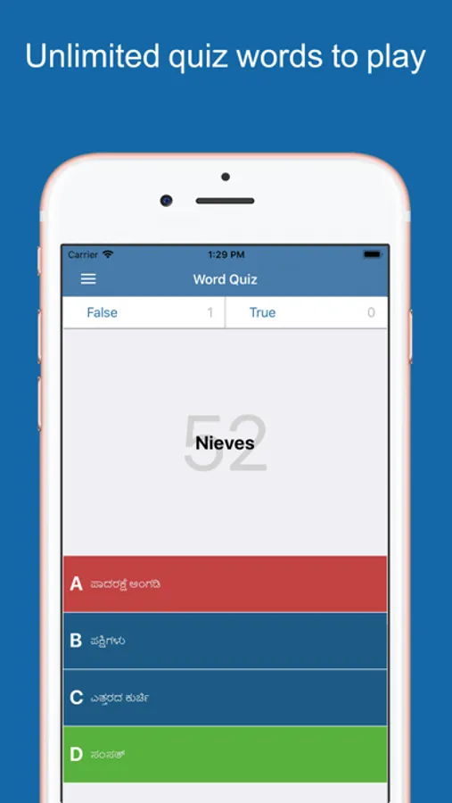 - We developed a new quiz inside Kannada dictionary! To take the quiz, you can easily tap the option icon in the top left side of the screen and choose quiz. Now, you will see a word in the screen with 4 answers, you will have to tap the answer that you think its right to see if it’s the good choice or not. Keep in mind, that there is a countdown timer and if it finishes without a reply from you, then the quiz will ends.