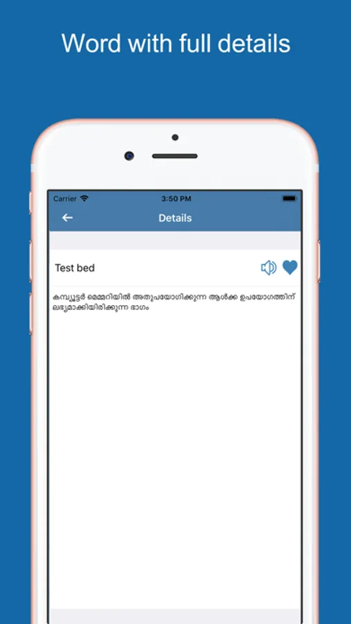 - Want to save a word meaning in the favourites? Tap the heart button and we will add this word automatically in your favourites. You can easily access to it anytime within the favourites choice in the options menu.