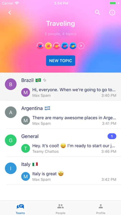 Teamy chat - is a new messenger with forum-based structure. It allows you to create teams and then start as many topics as needed inside ceratin team. Keep you conversations structured with Teamy chat.