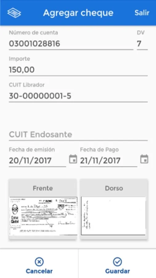 Cargadas las imágenes se muestran los datos del Cheque que debe confirmarse, luego, cerrar y autorizar el lote a procesar.