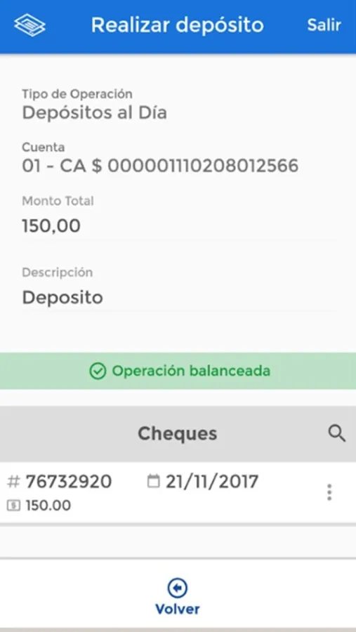 4. Ingresa el monto total de cheques y un campo opcional de descripción.