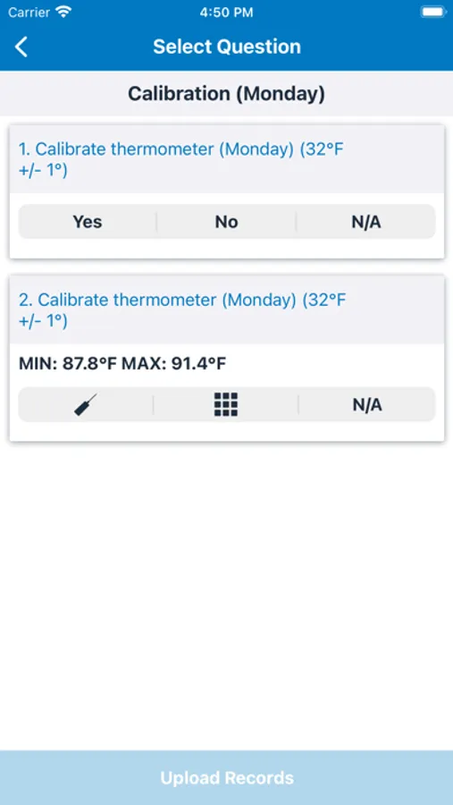 • Collect temperature data with Blue2 probe or ability to type in data and checklist responses
