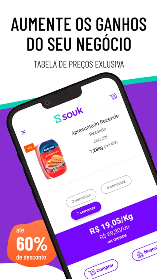 O vendedor não te visitou essa semana ou quando visitou você não estava? Acesse o aplicativo Souk e faça suas compras e negocie a qualquer momento. E tudo isso com as facilidades que você já conhece: prazo de pagamento, frete grátis e pedido mínimo a partir de R$ 130.