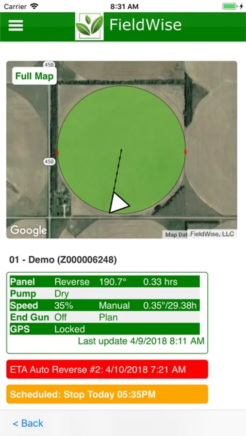 FieldWise provides easy-to-use controls for center pivots, moisture probe readers, and other sensors used in farming operations. The FieldWise app provides access to your FieldWise equipment on your mobile device.