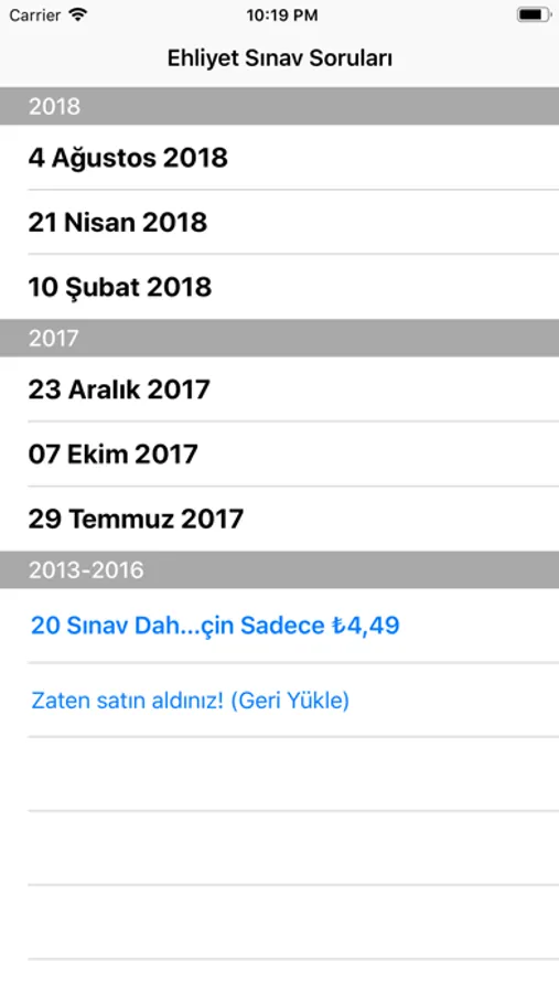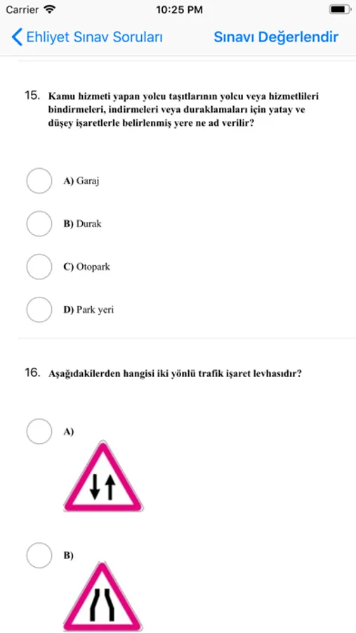 Ehliyet sınavında çıkmış son 5 yılın tüm sorularını içerir (4 Ağustos 2018 son sınav soruları da dahil).