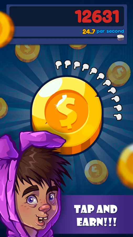 - Generate as many coins as you can by tapping on the giant coin. The faster you tap, the more you generate!