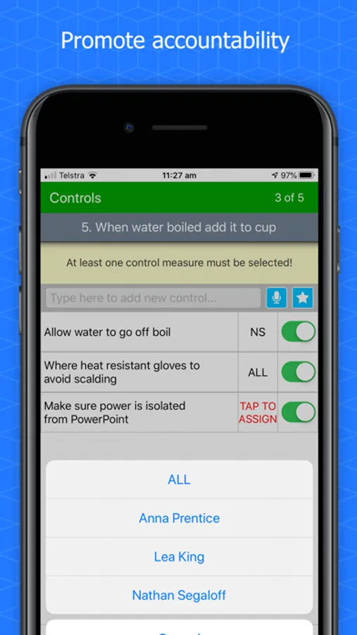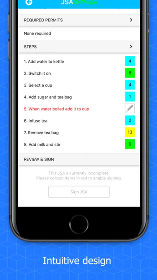 JSA OnTheGo's intuitively designed interface and built in 'compliance checking' helps to ensure that your JSA / JHA / JSEA will adhere to the strictest of standards with minimum effort.