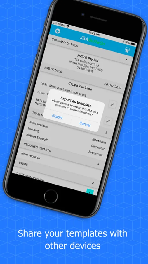 In order for you to really see the huge benefits of using this app in your workplace, we provide a 7 day trial that allows you to save unlimited signed JSA’s/JHA's for 7 days.