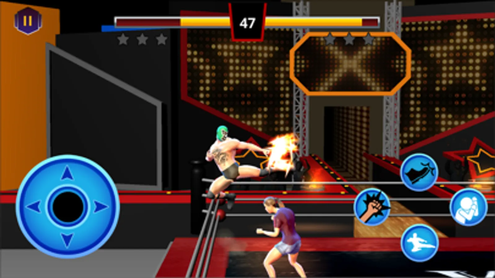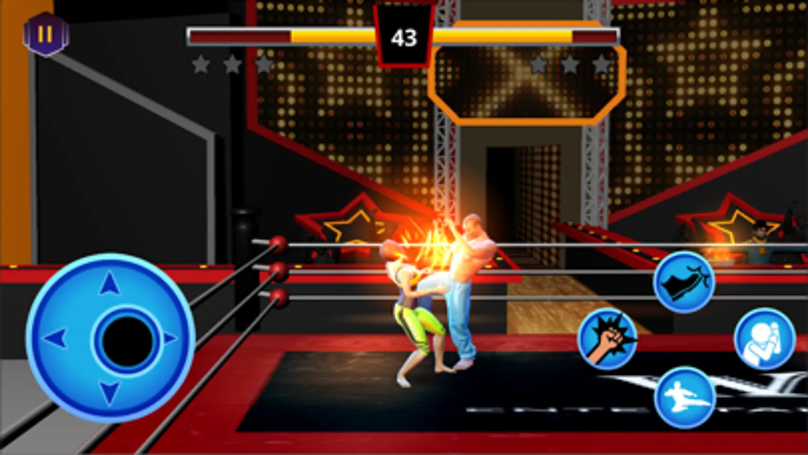 Enter yourself into the most dangerous world of fighting. Lets be ready to start your wrestling championship for the up coming fighting tournament . Defeat all the world class champions with face to face fight and jump fiercely into the ring like legend wrestler. Attack like a super star fighting champion and enjoy freestyle ring wrestling.World wrestling heroes combines their action fights with their personal experiences.So knockout all the enemies and win the ultimate battle.Prove your strength , show your power , attack like a fighter and become the world's ultimate champion of wrestling.So are you ready for war.Put on gloves and keep your fists ready to eliminate all the bad guys.Defeat all your opponents and competitors to win the tournament.To reach onto the top, you have to defeat them all. Fulfill your dream of imagination .
