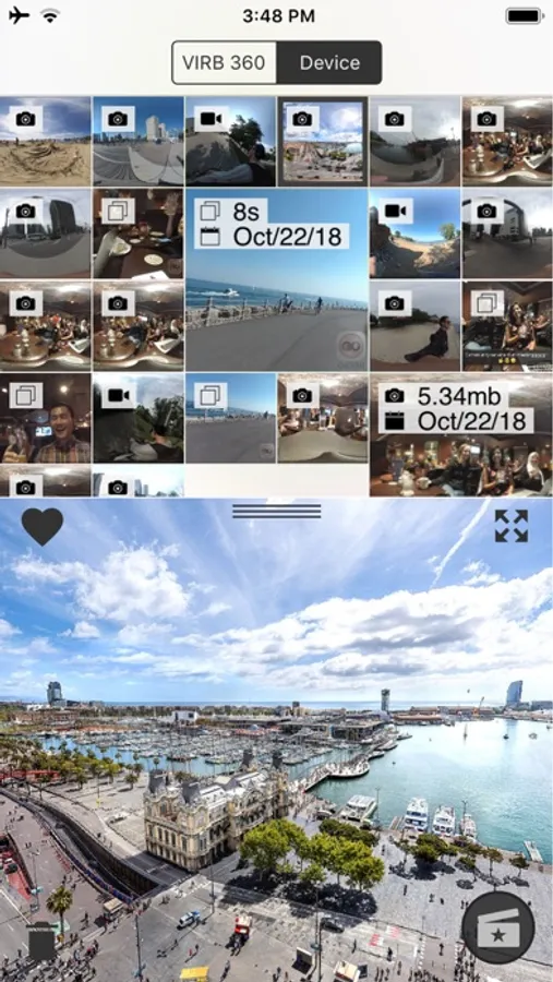 1 - Choose a 360° video or photo from the Virb 360 camera